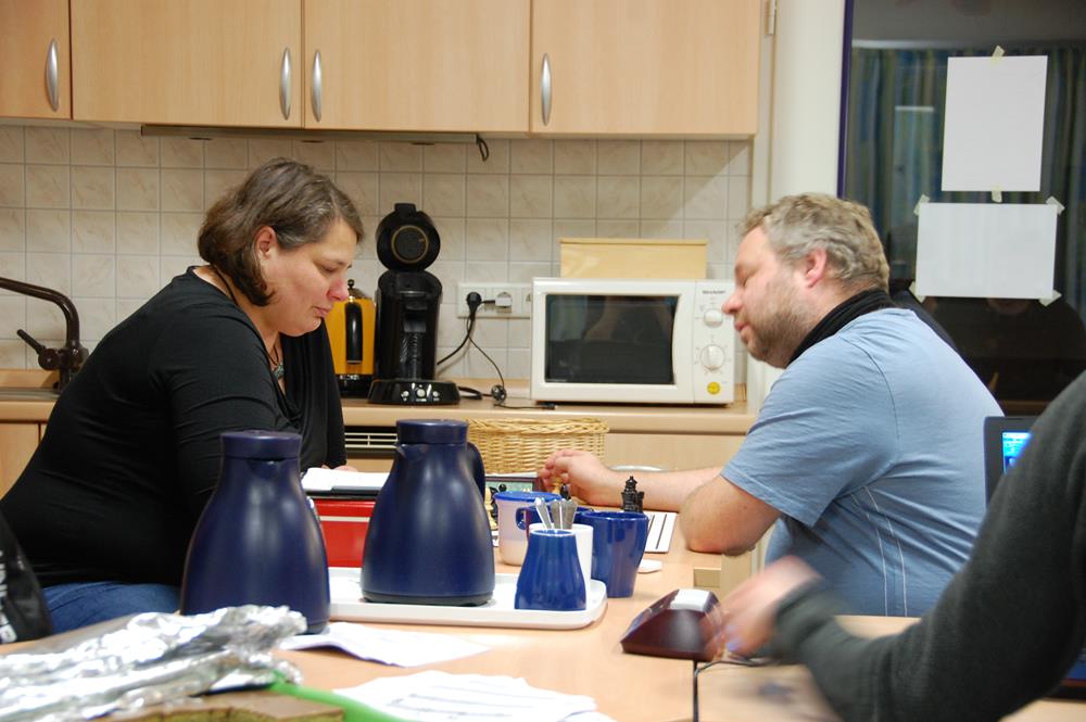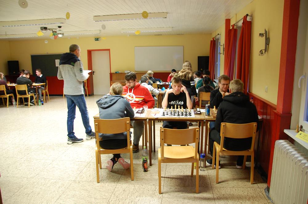 Um ca. 08:30 Uhr starten die ersten Partien und Brett 1 der U25 am Livebrett.